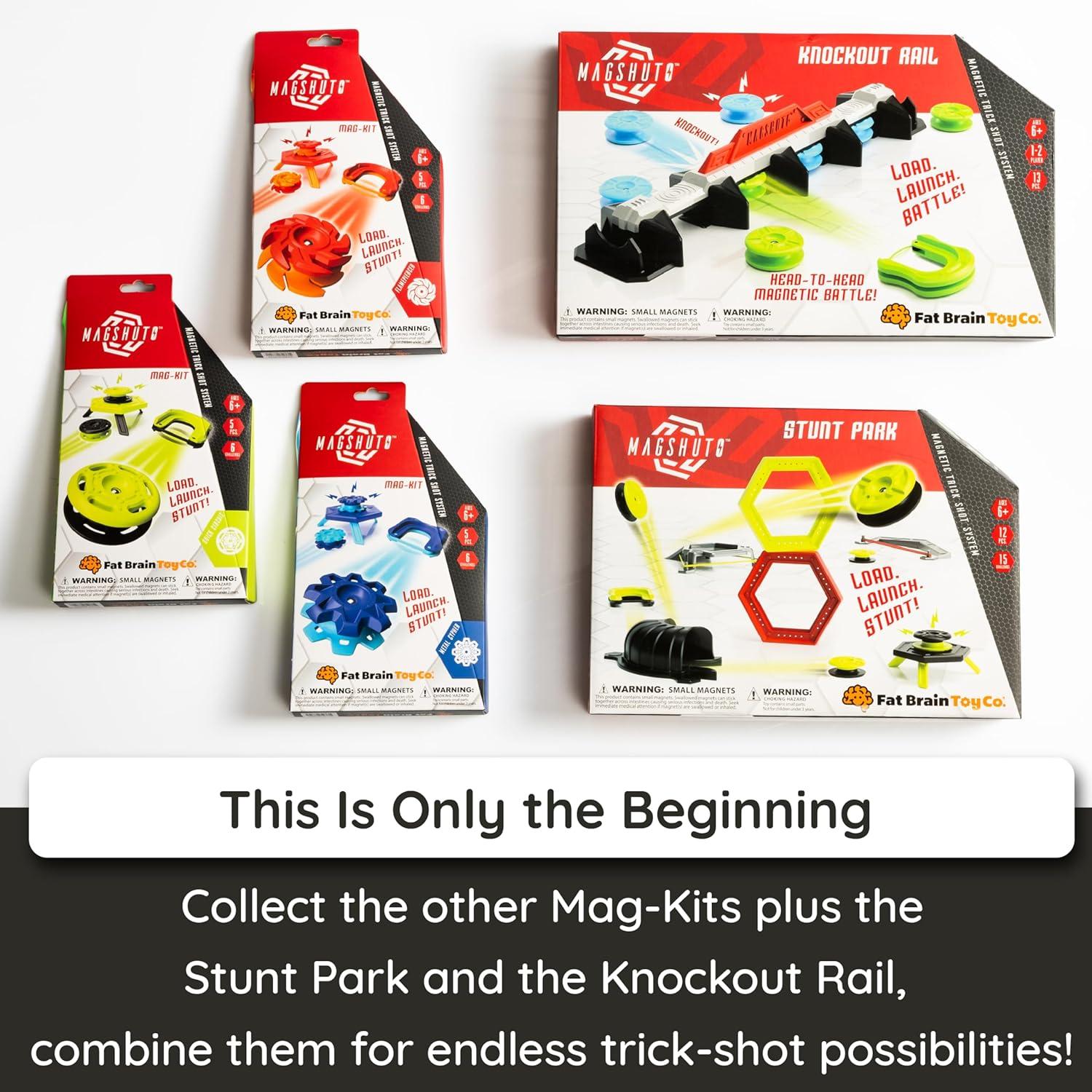 COLLECT ALL THE MAGSHUTO SETS! The Mag-Kit is available in three styles: Flamepiercer, Quick Circuit, or Metal Cypher; Each set includes a launcher, a Mag-Module, 3 Mag-Pods, 6 challenge cards; Each set is fully compatible with all other Magshuto sets, including the Magshuto Stunt Park and the Magshuto Knockout Rail