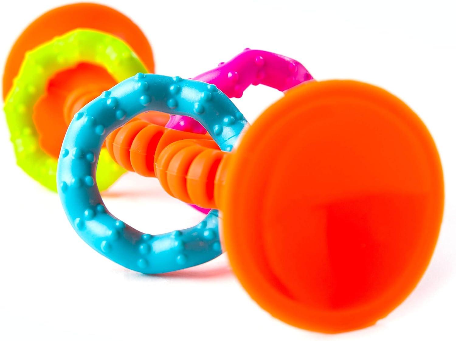 Fat Brain Toys pipSquigz Loops – Orange Silicone Suction Cup Baby Sensory Toy for Babies and Toddlers 6 mos+