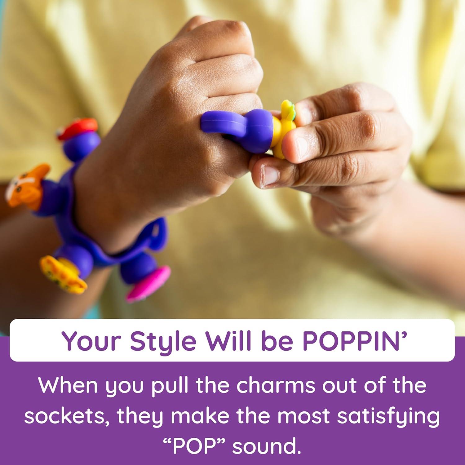 PLAYFUL WAY TO ACCESSORIZE: Swap the eight charms between the ring and the bracelet; When you pull the charms out of the sockets, they make the most satisfying POP sound; Wear it on your wrist or hook it onto your backpack or water bottle