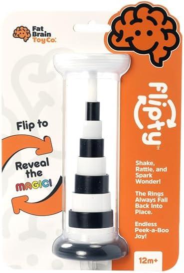 Fat Brain Toys Flipty, Sensory Toy and Baby Rattle with Peek-a-Boo Surprise for Babies and Toddlers 12 Months and Up